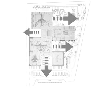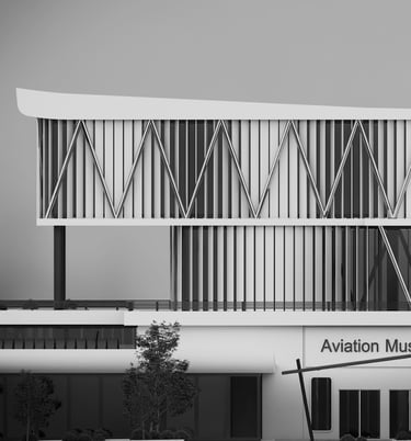 The museum's exposed structure is a key feature of its design, showcasing the latest in architectural and engineering techniques. The use of exposed steel beams and concrete columns creates a striking visual effect, emphasizing the museum's connection to the high-tech aviation industry. The design also incorporates large windows and skylights, allowing natural light to flood the space and providing stunning views of the surrounding landscape.