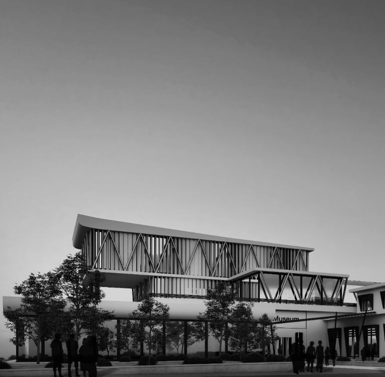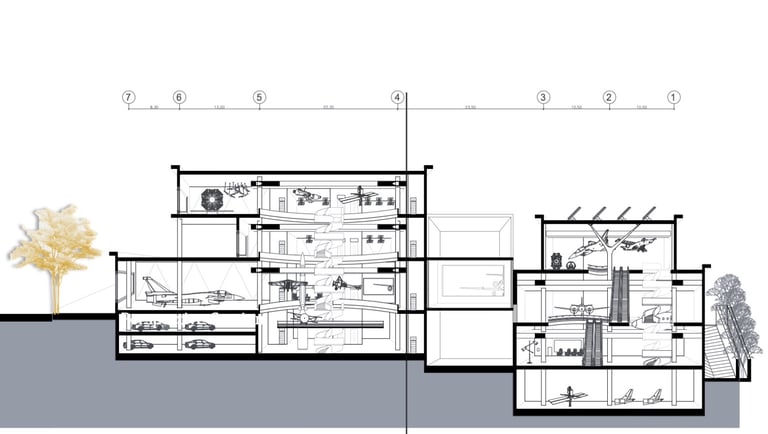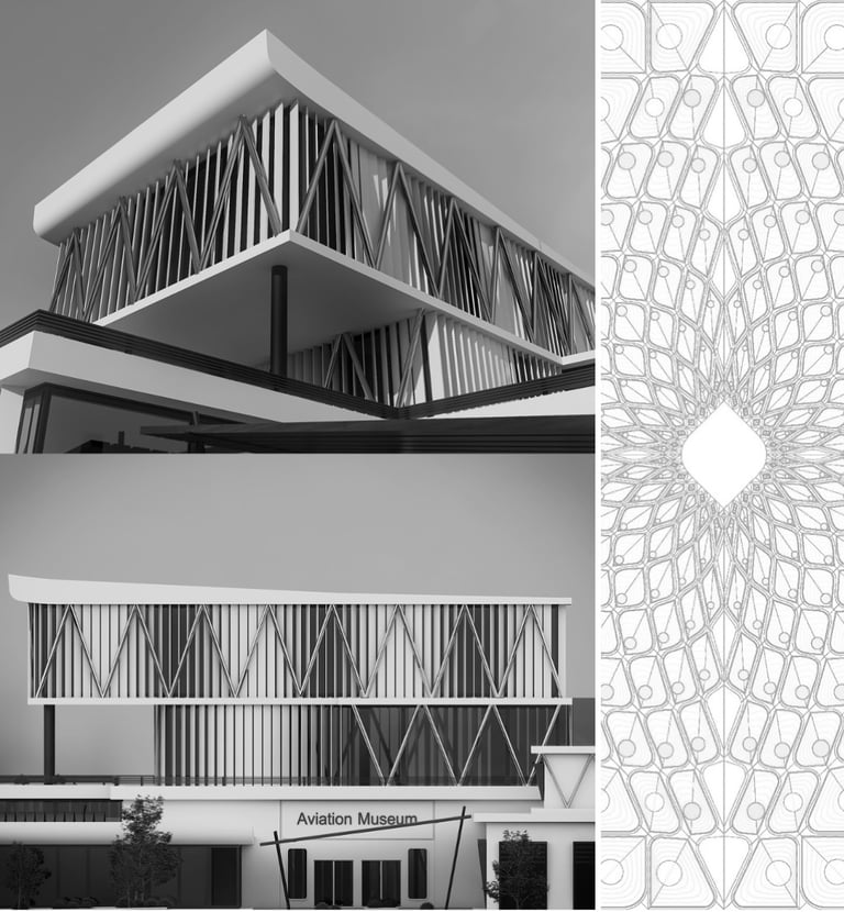The high-tech aircraft museum in Mashhad, Iran is a state-of-the-art facility that celebrates the rich history and technological advancements of the aviation industry. The museum's architecture and technical features are designed to create a dynamic and immersive experience for visitors, while also harmonizing with the surrounding environment.