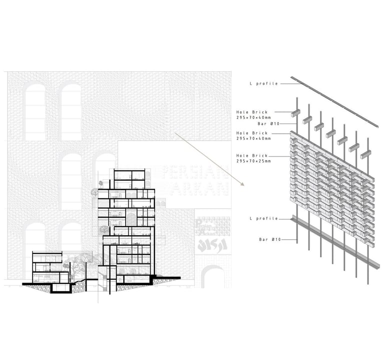 Applying the principles of indigenous architecture according to modern technology (rather than imitating and replicating it) and increasing the readability of urban space promote social interactions. This project aimed to increase the relationship between the building and the context while instilling a sense of belonging in the project audience. Since this use of project was a student dormitory, the plan was designed to create interactive and multi-purpose spaces.