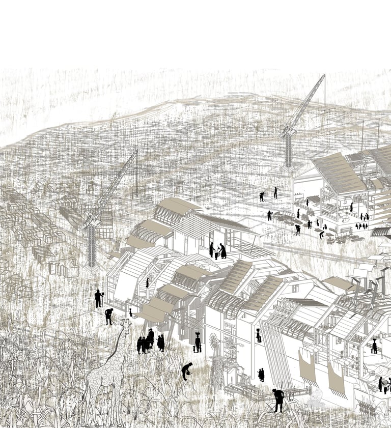 This thesis explores a radical approach to addressing environmental degradation and the impacts of capitalism by reimagining the skins of industrial sites. The concept revolves around using locally sourced agricultural waste—specifically corn cobs—to create a purifying material that absorbs air pollutants. This material is processed in low Earth orbit, where the unique space conditions enhance its effectiveness as a "purifier skin" for industrial sites on Earth. The project aims to offer an innovative, sustainable solution that minimises new ecological damage while catalysing a broader shift toward post-capitalist thinking, giving Earth a "moment of stillness" to heal.