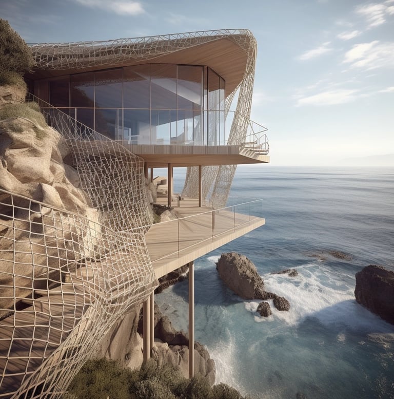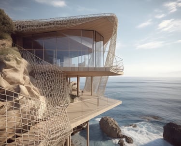 a residential complex designed to resemble a series of interconnected treehouses. The buildings would be constructed from natural materials such as wood and stone, and would be arranged around a central courtyard filled with plants and trees. The individual units would be connected by suspended walkways that wind through the foliage, creating a sense of living in a treetop canopy. The overall effect would be both futuristic and organic, creating a unique living space that is both visually stunning and in harmony with nature.